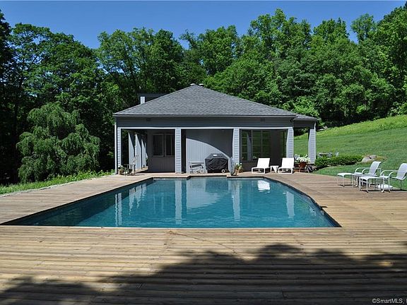 AVAILABLE August 1, 2025 - Labor Day. Complete privacy with remarkable distant views from this immaculate South Kent property on 16 acres. 3 bedroom main house plus 1-2 bedroom guest house. Incredible long views from open Living Room-Dining Room-Kitchen with stainless steel cabinets and appliances. Fabulous stone fireplace in Living Room. Gunite heated pool directly off house. Just minutes to Kent, New Preston, Lake Waramaug and Bulls Bridge Golf Club. Surrounded by estates in one of South Kent's prettiest locations.