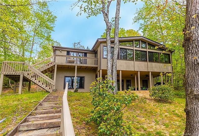 Lakefront home on Lake Wanteska in Connestee Falls a premier Western NC. Gated Community. Home has been totally updated including new island kitchen, custom cabinets, granite, New Bosch S/S Induction Cook Top, Wall Oven, Microwave, Dishwasher Refrigerator and greenhouse window. Family room inhanced with hickory floors, vaulted ceiling, two sided Gas Log Fireplace. Large sunroom overlooking lake. Master with 2 sets of closets, bath with granite, large shower with custom glass. Lower level greatroom, woodstove, kitchenette, separate office, two guest bedrooms with new full bath accented with granite and custom tile finishes .Easy access to lake with private dock. Come see why we love living where we play.