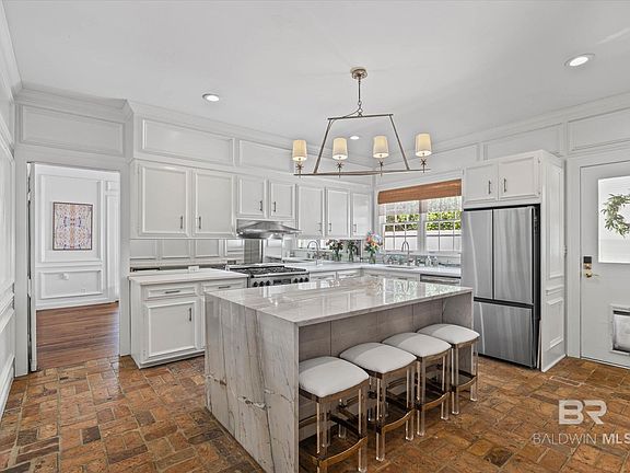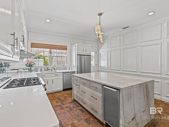 Beautiful cottage situated on a gorgeous, almost half-acre, corner lot in the heart of Spring Hill! Designed by Arthur Prince of Architects Dietz, Prince, and Fischrupp, this home is as lovely inside as it is outside. Special features of this home include tall ceilings, updated kitchen and bathrooms, pretty chair rail and panel molding, pickled pine walls, an open floor plan with spacious living areas, hardwood and Old Mobile brick floors, and large windows. The kitchen, with a fabulous, large marble island complete with cabinets and drawers, is the heart of the living space and has custom wall paneling with hidden cabinetry for a pantry, storage, and laundry. Three bedrooms offer comfortable space with tons of storage. One of the bedrooms features built-in bunk beds and the primary ensuite bedroom has a beautiful bathroom with Ann Sack marble tile, an oversized shower, beautiful custom glass window, and Perrin and Rowe hardware. The second bathroom, updated with pretty fixtures, opens to the other bedroom with new wood paneling and the hallway. In addition to the open living and dining room combination with large windows, hardwood floors, and a fireplace, there is a cozy den with French doors overlooking a side courtyard. The outside features an expansive front porch that stretches across the entire length of the home and is the perfect spot to enjoy the gorgeous, landscaped yard that is secluded and private. There is also a covered carport with attached storage and a charming, historical gazebo that has an additional 200 sq ft of heated/cooled living space (not included in the square footage) that would be a perfect office or playroom. Upgrades, per seller, include: a fully encapsulated crawl space with dehumidifier installed 8/24, new refrigerator 8/25, chimney sweep and top of flue cleaned, sealed, gas logs repaired 8/24, picket fence for backyard, and ceiling fans on porch. Full of charm and in a perfect location in Spring Hill, this home is a must-see. Buyer t