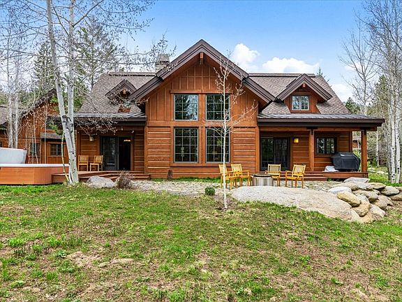 Beautifully appointed Bitterroot Chalet nestled in the trees at the end of a quiet cul-de-sac. Quality construction is evident from the gleaming wide plank, hardwood floors to the gorgeous vaulted wood ceiling. The great room is anchored by a fabulous, stacked stone, wood burning fireplace and features a two-story bank of windows that gives the living space warmth and light. The main level master suite has a gas fireplace that adds to the ambiance of the already serene setting. Upstairs are two large guest suites each with their own bathroom and are separated by a spacious loft. With a Nordic trail out the back door and the Poma chairlift 100 yards away, it's easy to go downhill skiing, cross country skiing, biking, hiking, or snow shoeing. After a fun filled day enjoy the hot tub in your own private setting or get cozy and read a good book. Perfect for a primary residence, vacation home, or rental. Everything you could possibly want in a mountain getaway.