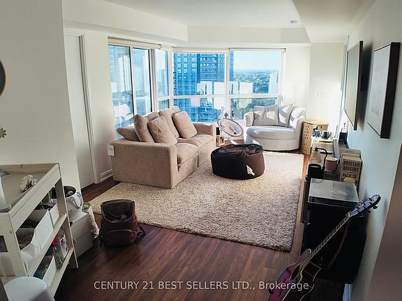 Welcome to Ventus I by Tridel at Metrogate. This bright and spacious 2-bedroom, 2-bathroom suite offers a smart split layout and unobstructed northwest views. Features a modern kitchen with upgraded lighting, plenty of natural light, and a clean, move-in ready feel. Enjoy great building amenities including a gym, party room, and 24-hour concierge. Convenient location close to Hwy 401, TTC, parks, shops, and restaurants.