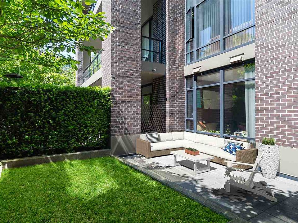 Welcome to your private oasis in Lower Lonsdale at the SKY building. A large 1 bedroom & den situated on the ground floor with private walk up access to an oversized 505 SQFT sun drenched PATIO! Floor to ceiling windows, extra height 9 ft ceilings an open concept kitchen and living room. Kitchen is complete with S/S appliances, and Gas stove perfect for cooking your favourite Gourmet meals! A very spacious master bedroom that easily fits a king bed and den that can be converted into a nursery or an office and bathroom features radiant heated floors. Steps to public transit, seabus, your favourite restaurants and exercise studios that Lower Lonsdale has to offer. Call today for your private viewing. OPEN SAT OCT 24, 2-4 PM