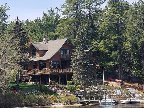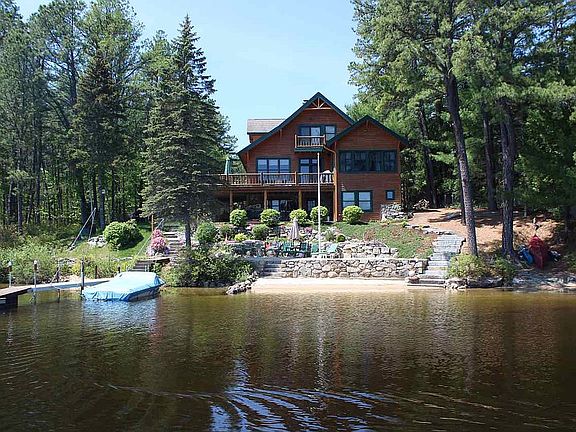 Beautiful lakefront home with large, private lot, big sandy beach, huge deck, balcony, immaculate landscaping including terraced stone walls and fruit trees, large detached log garage with stone front and heated in-law above. New standing seam steel roof, 8000 KW solar system w 6 batteries - virtually zero electric bill! This property has everything…for half the price of Lake Winnipesaukee.