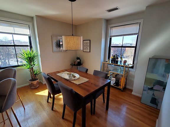 South End... W. Brookline St.... Very Large & Sunny Entire top floor two bedroom in professionally-managed corner brownstone building on great street steps to Tremont St's Restaurant Row in the heart of the South End. Entertainment-sized living/dining area with working fireplace, hardwood floors, open fully-applianced kitchen with breakfast bar, windows on all four sides, great sun light and South End views, private deck, Central Air & heating, two very large bedrooms with ample closet space, 1.5 tiled baths, Washer & Dryer in the Unit. One Month Fee. Utilities not included. Available 9/1 for $3550.