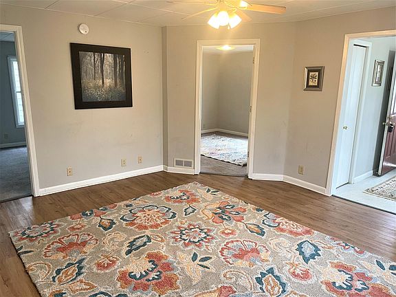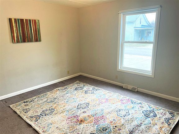 Nice small town living with all city utilities. Newer windows, gas heat and central air. Quiet area close to parks. Newer concrete parking for 3 cars plus a conctete patio. There are high ceilings above the dropped ceiling. The storage building has a window and sets on a concrete slab. Great area for a large garden.