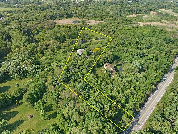 Beautiful 5 acre Barrington Hills wooded lot with pond and 5 stall barn on property. 3,142 sq. ft. house, built in 1961, with 4 bedrooms and 2.5 baths is on the lot. There's also a horse barn and access to Barrington Riding Trails. AS IS for extensive remodel or rebuild. Sought after District 220 Barrington Schools. School bus at the end of the driveway. Showings only of the lot now. See aerials, with property lines, and fly-over video of the house and property. The driveway is off of Dundee Road. Contact listing broker with questions.