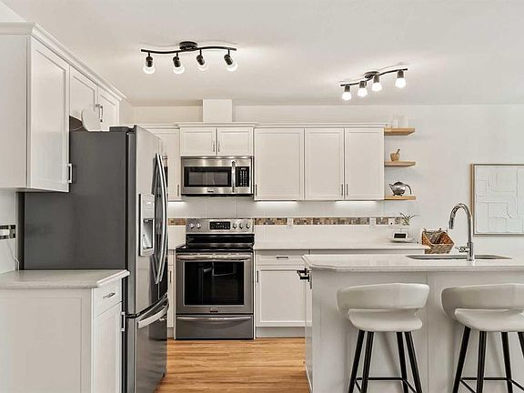 Largest pie lotsQuaint front porchOpen concept main floorNeutral colour paletteAbundant natural lightCrisp white cabinetryStainless steel appliances