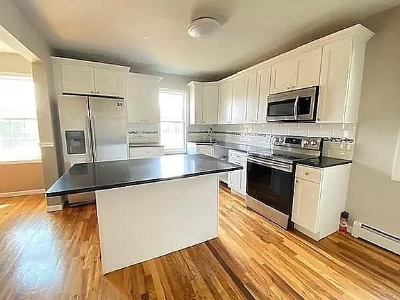 Commuters Delight !! This 3 bedroom 1.5 bath Duplex with Laundry feels like having your own home. Oak floors throughout the space. Front entry into large Living room with picture window open to a big Stainless & Granite Kitchen. First floor Full bedroom w/ Full Bath. Upstairs are 2 King bedrooms with a half bath. Use of front yard, your own basement for storage & Laundry. Lawn Maintenance included. 2 car Driveway parking. Walk to LIRR, short drive to Huntington Village, Highways and beaches. Heat & water included. Tenant pays the Broker fee of one month rent.