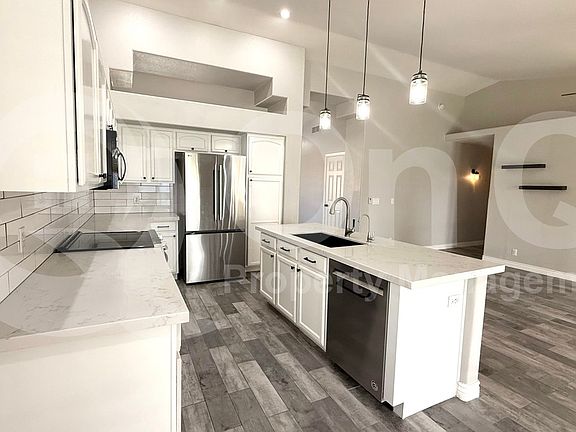 This 1,702 SQ FT single-story home offers 3 bedrooms and 2 bathrooms in Gilbert's desirable Rancho Del Verde Unit 2 neighborhood. The inviting kitchen comes complete with a brand-new LG refrigerator, dishwasher, microwave, oven, and a reverse osmosis system, providing modern convenience and style. Open and spacious living areas feature brand-new, beautiful tile flooring throughout, abundant natural light, and an XL doggy door suitable for any size pet. The primary suite boasts a walk-in closet, while the remaining bedrooms are comfortably sized to fit your needs. A dedicated laundry room includes the washer and dryer for added ease. Parking is available with a 2-car garage. The backyard is a true retreat with turf installed in the front and back, a grassy play area, a fenced yard, and a sparkling swimming pool complete with a brand-new pool fence for safety. Major upgrades include a state-of-the-art HVAC system that was recently replaced, a smart thermostat that integrates with smart home systems, and the option for tenants to connect to a Ring security system. A water softener adds extra convenience. Located in a sought-after community, residents enjoy parks, playgrounds, biking and walking trails, and a community park on Shamrock Street featuring large grass fields, a playground, basketball court, sand volleyball court, and a neighborhood library.