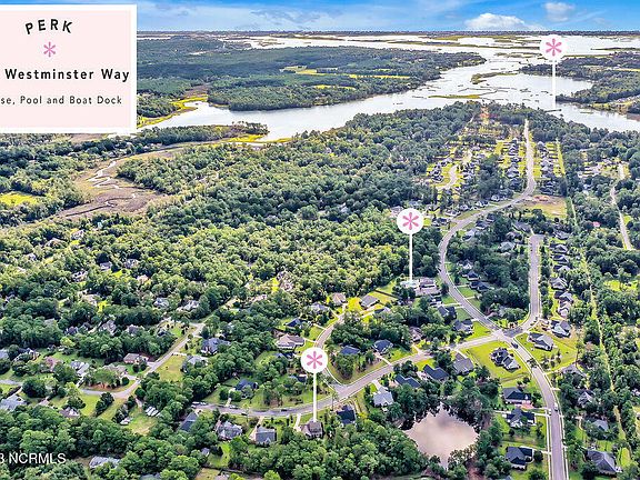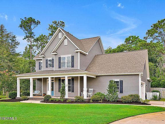 Welcome to Crown Pointe, a waterfront community filled with mature trees, large lots with community dock and community pool. The rocking chair front porch welcomes you home. This three bedroom three and half bathroom home has two additional bonus rooms with closets that could also be used as a fourth and fifth bedroom bedrooms. The home features an open floor plan with kitchen island, quartz countertops, backsplash, and stainless steel appliances. Living room features a fireplace with upgraded trim with shiplap and coffered ceiling. Formal Dining room features wainscoting and breakfast nook has custom built ins. Large first floor master bedroom with upgraded master bath with walk in tile shower with glass door, separate tub with tile surround, dual vanities with granite countertops. Laundry room features wet sink plus extra cabinet storage and powder room finish the downstairs. There is another master bedroom upstairs with tile shower and glass door. Large third bedroom upstairs plus another third full bathroom. Two more bonus rooms upstairs with closets plus a loft area. Big back covered porch overlooking large private homesite with mature trees. Side load two car garage gives you plenty of parking space in the long driveway. Crown Point is a gorgeous neighborhood with tree lined streets, street lights, and plenty of space to call home. Crown Point is minutes to the beautiful beaches of Topsail Island, located in the award winning Topsail School District, and half in way between Wilmington and Jacksonville. Call today to schedule your showing!