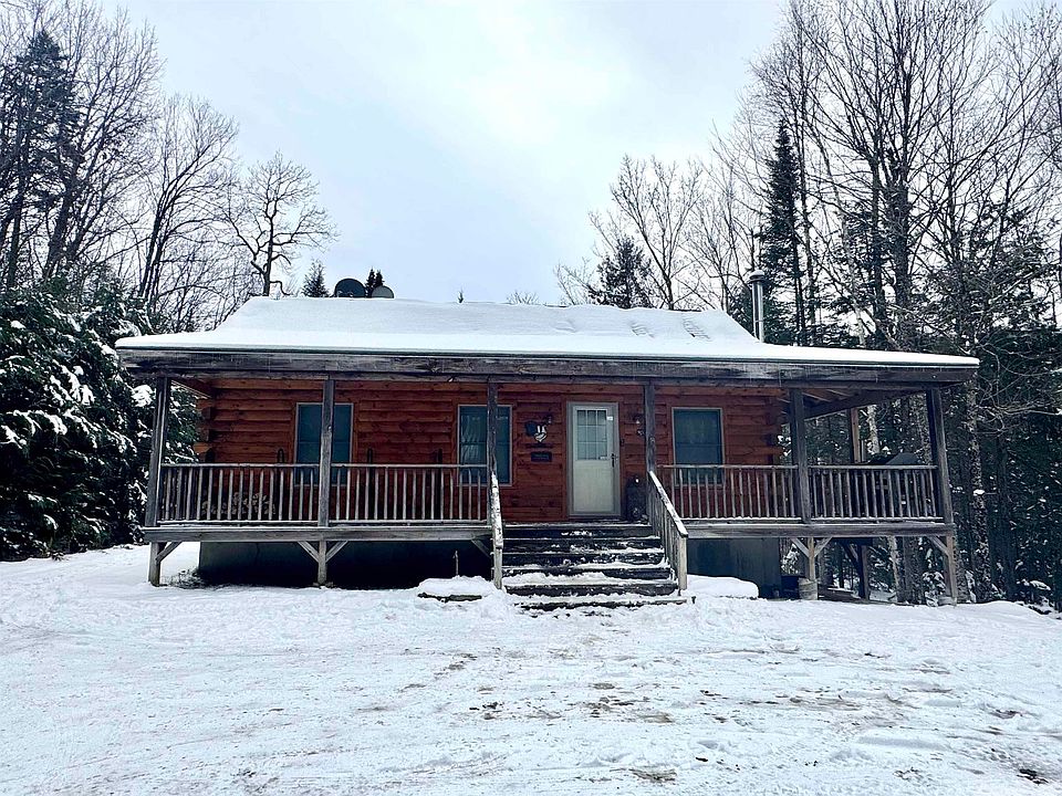 Now is your opportunity to own this exceptional log home located in East Charleston, designed to offer privacy and harmony with its natural surroundings. An expansive wrap-around porch welcomes you, offering multiple vantage points to enjoy the tranquil brook, wildlife and your morning coffee. Inside, the main living area showcases soaring cathedral ceilings and a stone-accented gas stove, creating a striking yet inviting atmosphere. Followed by the thoughtfully designed kitchen, two well-appointed bedrooms, and a three quarter bath complete the first level. The second-floor loft provides a refined overlook to the main living area, enhancing the home’s sense of openness and architectural charm. The lower level features a spacious family room (19’8”x17’5”), a full bath, and a utility room with laundry—ideal for both everyday function and guest accommodation. This home is equipped with a comprehensive exterior security system, providing added peace of mind whether it’s used as a primary residence, second home, or rental property. A generously sized heated two-bay garage (19' x 22') offers added versatility, including an upper-level area suitable for finishing into an apartment or maintaining as extra storage. Perfectly positioned for those who appreciate both outdoor recreation and convenience, the home is close to VAST trails, ATV routes, restaurants, shops, and essential amenities. This property presents a rare opportunity to own a serene, beautifully crafted Vermont retreat.