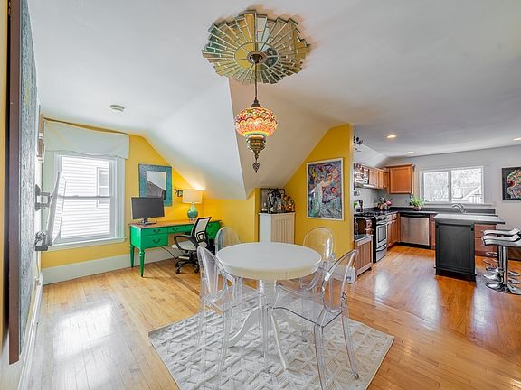 Blocks from Davis Square and steps to the bike path! This light-filled, top floor 1 bedroom condominium is brimming with charm and character. Enjoy a spacious renovated kitchen with plenty of cabinets and counter space open to a dining/office area. Hardwood floors throughout, in-unit laundry, private storage and 1 off street parking space. Enjoy all the various restaurants and shops, as well as easy access to the Red Line and new Ball Sq. Green line station, as well as I-93 for an easy commute. Low condo fee and shared yard space!