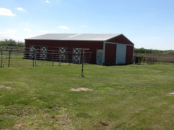 Property is on a paved road within minutes of Iola! Well kept farm house with huge yard. Kitchen has been updated, appliances are included. Bathroom redone 5 years ago. Vinyl siding installed and insulation added approx 6 years ago. Roof re-shingled (complete tear-off) with Tampko shingles 13 years ago. Hot water heater is 4 years old. Potential for additional living space to be added in attic and/or basement. Two car detached garage and other outbuildings, including 9 stall horse barn. Fenced arena, plus other options to reconfigure fencing to create different pens. Home is heated with Propane, Electric with Heartland Electric, water with City. Perfect set-up for horse lovers, or income opportunity for boarding horses.