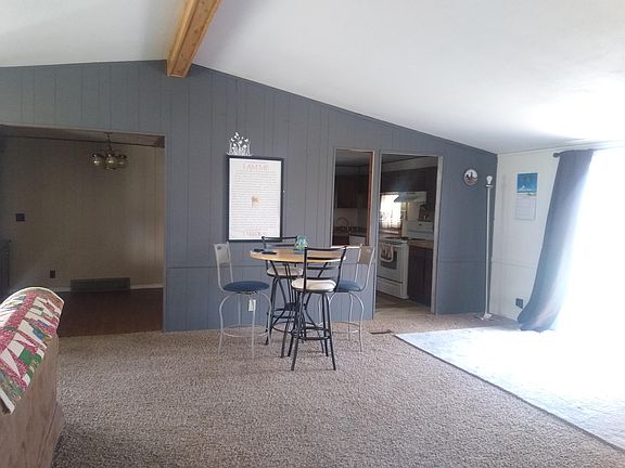 Mobile home with vaulted ceilings in the living room. Large master bedroom and bath. Sits on 1 1/2 lots very close to Meidinger Park, and the outdoor skating rink. The basement is unfinished with a dirt floor.