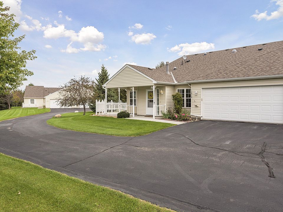 This town home is perfect for someone that will need wheelchair access from the garage! The TH is all one level with an over sized garage and hand rails in the bathroom. Both bathrooms have beautiful travertine flooring. The sun porch and see through gas fireplace keep this home warm and quaint. It will not last long!