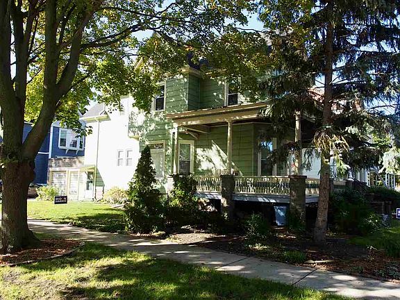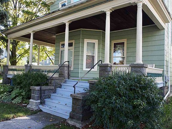 Newer vinyl windows, roof 2007, beautifully refinished hardwood floors, partial update of baths, appliances included. Great owner-occupied 2-unit with each floor a mirror image of the other. Easy to convert and sell for much more as a single family residence. 2 car garage, classic front porch. Move in condition in a desirable area.