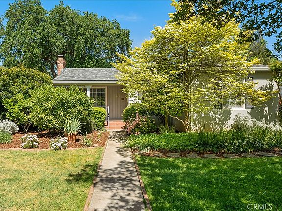 Welcome to this charming, adorable home in the heart of Chico! Situated just a stone's throw away from downtown, this delightful and well-maintained property boasts original hardwood floors, a large lot with mature trees, and beautiful landscaping that will make you feel right at home. The interior is filled with original character and warmth with plenty of natural light pouring in through the updated windows. The spacious living room invites relaxing, or entertaining guests in front of the cozy wood stove on chilly evenings. The kitchen enjoys plenty of cabinet space and a garden window over the sink to gaze at the beautiful backyard views. Two cozy bedrooms each have their own unique charm and large closets. A full, tastefully updated bathroom boasts a large, tiled shower and new vanity. In addition, a detached garage offers the potential for a second unit with alley access as well as a gated carport for parking. Throw open the dining room’s double french doors and step out to a beautiful Trex deck with pergola, spa and a lush, private backyard perfect for summer BBQs, gardening, or just lounging in the sun. Trees provide plenty of shade and fruit while the landscaping adds a touch of beauty and tranquility. This lovely Chico home is a must-see for anyone looking for a cozy and comfortable place to call their own. Don't miss out on this opportunity to make it yours!