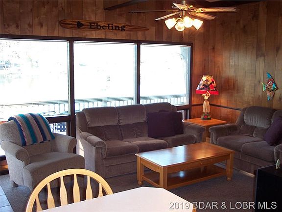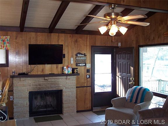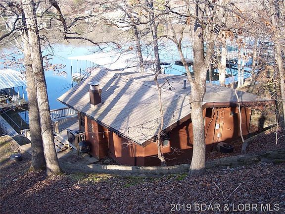 46MM lakefront 2-3 BR/1 bath home with gentle walk to lake. Just a couple of steps down and you're on the dock having fun. Bathroom has been renovated and also has a place for stackable right by hot water heater, just put a door on the other side. Home has central heat & AC. Vaulted ceilings throughout home. All furniture stays! Really amazing home right by the water! This property sits in a large wide cove with great views, large deck for relaxing and nice 2 well covered dock w/10x26 largest slip. BR #3 & family room are above garage in loft area & has central heat and AC. All bedrooms have closets and there is also plenty of storage room in the garage. Large garage up the hill has enough room for overflow and plenty of room to park everyone. It is plumbed for water and ready to go.