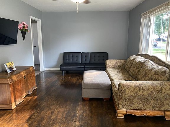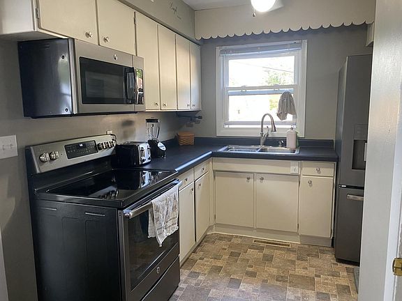 Adorable home! Nice sized living room with hardwood floors. 2 main floor bedrooms. Eat-in kitchen, appliances are negotiable. Partially finished basement that offers a large 3rd bedroom (no egress) and a family room. Privacy fenced backyard with covered patio. 1.5 car garage. All new plumbing, water and waste lines 2016. New sewer line 2017. Newer windows throughout. Perfect first house!