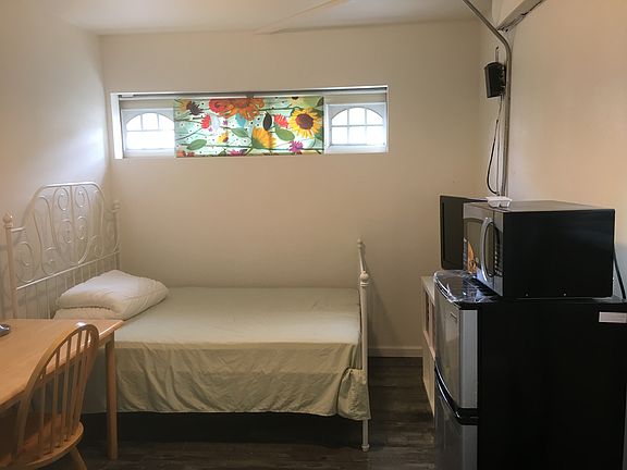 Studio with one bath room. It is a side unit of a single family house with its own entrance. There is a electric cooker, microwave oven, and refrigerator. there is no bed. Nice neighborhood. The unit is converted from 1/2 of the garage. shared washer and dryer with landlord. All Utilities, trash, and the WiFi services paid by the landlord. One year lease including the utilities, trash, and wi-fi services.