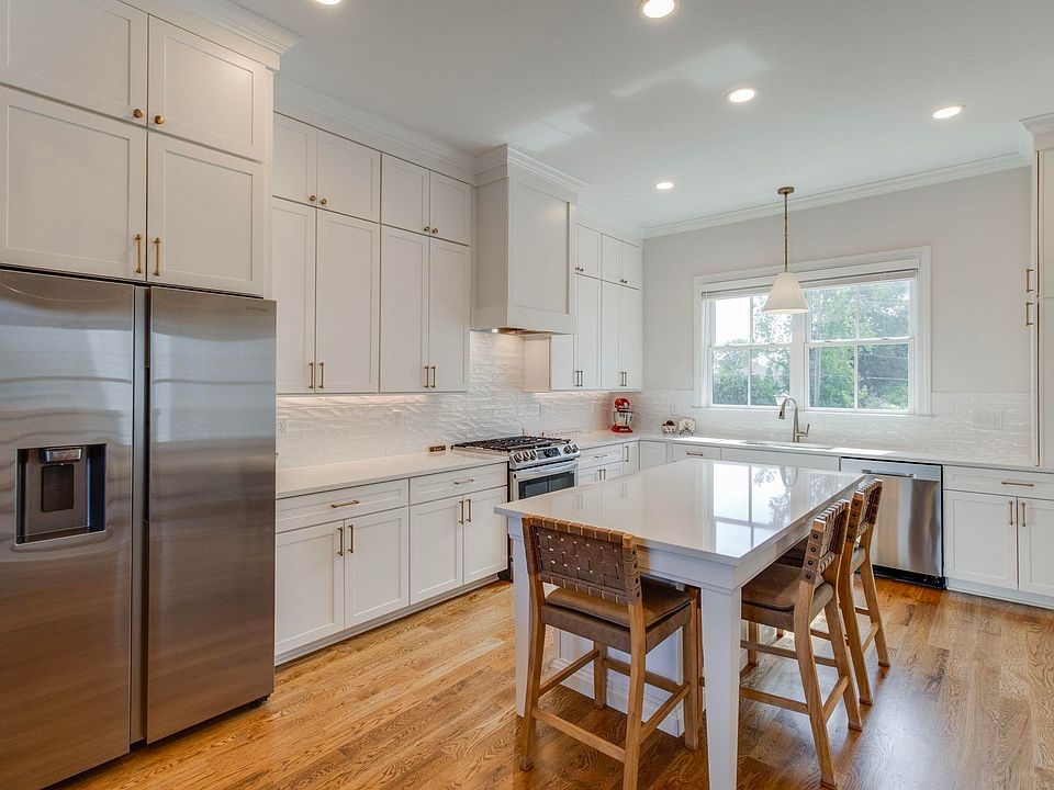 Private in-home elevatorCovered balconyOversized islandTankless water heaterStainless steel appliancesTile backsplashGas range