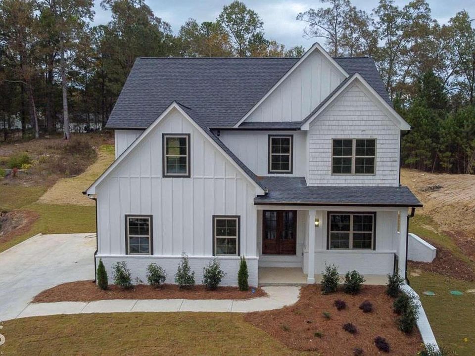STUNNING 5 Bed/3 bath new construction w/ a daylight basement on almost an acre! This home sits high above street level and is setback far from the road-perfect for relaxing and sipping coffee on the rocking chair front porch. The main level is an open concept from the kitchen, to family room and dining room. The kitchen island looks out to the family room, has built-in SS appliances, a walk-in pantry, and quartz countertops. Tired of the typical builder grade designs and fixtures? This home offers wide plank hardwood floors, herringbone kitchen backsplash,a modern accent wall in the dining room, coffered ceiling in the family room, custom iron stair railings, and stunning light fixtures-including on the exterior. The bedroom w. full bath on main is ideal for multigenerational households OR use as a home office. Need space for the kids? We've got you covered. Huge bonus space upstairs perfect for a media/game room or homework station! The master suite has tray ceilings, a spacious walk-in closet, double vanity, sep. soaking tub, and step-in shower. For convenience the laundry room connects to the master closet. Effectively control the temperature of each floor with the 2 separate HVAC systems. Easy to finish the basement with current framing and insulation in the ceiling. Basement exterior door leads to the spacious side patio-perfect for a cozy fireplace. White transitional farmhouse/craftsman exterior with a dark trim package. Trees lined at the front and back of the lot for privacy, but none over or next to the home resulting in easier gutter, lawn and roof maintenance! Overabundance of space in the front, back AND side yard! Mins to 316 and Downtown Lawrenceville.