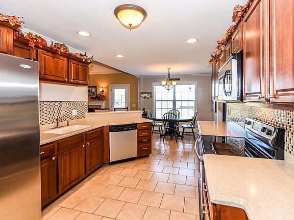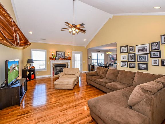 THIS BRICK, STONE & VINYL HOME SHOWS LIKE NEW & FEATURES MOUNTAIN VIEWS & SUNSETS TO DIE FOR! AMENITIES TO INCLUDE: GREAT ROOM (W/CATHEDRAL, HARDWOOD FLOORS, CROWN MOLDING & GAS FIREPLACE), EAT-IN KITCHEN (W/TILE FLOOR, CORIAN COUNTERS, BUILT-IN DESK, CROWN MOLDING & TILE BACKSPLASH), SPLIT BR PLAN, SEP. DINING ROOM (W/WAINSCOTING, HARDWOOD FLOORS & CROWN), OVERSIZED MASTER BEDROOM ON MAIN (W/CATHEDRAL CEILINGS), LARGE MASTER BATH (W/JETTED TUB, DOUBLE VANITIES, TILE FLOORS, WALK-IN CLOSET & WALK-IN SHOWER), 2 GUEST BRS, GUEST BATH (W/TILE FLOOR & WARM PAINT) SEP. LAUNDRY ROOM (W/MUD SINK & TILE FLOOR), LARGE BONUS ROOM (W/SEP. H&A UNIT & MOUNTAIN VIEWS), LOTS OF FLOORED ATTIC STORAGE & DOUBLE TIERED DECK W/FIREPIT! ENJOY THE MOUNTAIN & PASTURE VIEWS FROM THIS WONDERFUL HOME THAT BACKS UP
