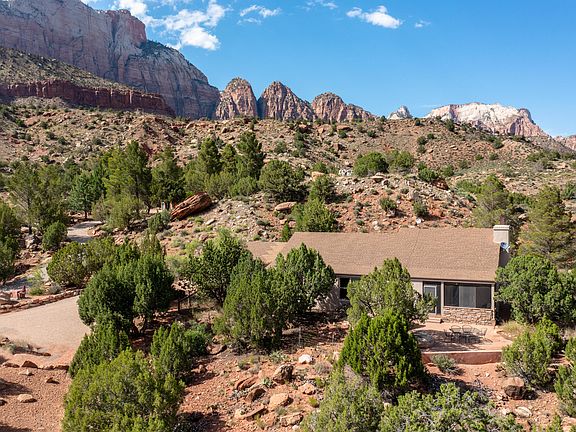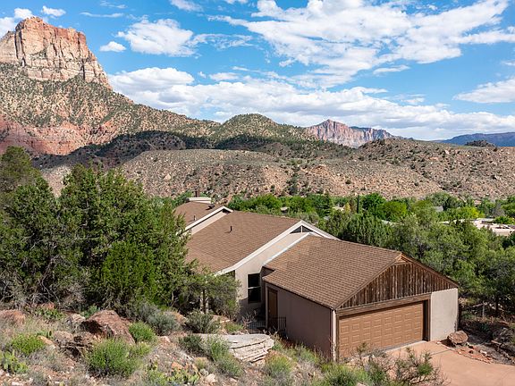 Welcome to your very own slice of heaven, surrounded by unparalleled views of Zion National Park. This secluded location offers a private retreat, complete with large view windows and a sunroom to take in the stunning scenery. The kitchen features built-in stainless steel appliances, including a mini-fridge, for all your needs. The spacious master bedroom boasts a walk-in closet, while the large laundry room includes ample storage and even features a dog wash station. Step onto the patio to enjoy breathtaking views, creatures such as turtles and hares, along with deer on a daily basis as you host a cookout on the outdoor BBQ. This is your chance to own a piece of paradise in desirable Springdale, hike your own private part of Zion, camp out or repel down your own mountain!