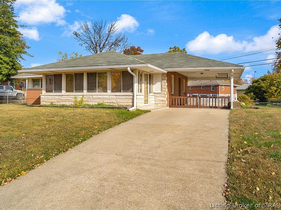 Nestled in the heart of Clarksville, this charming 2 bedroom 2 full bath Bedford stone and brick home has been tastefully updated and offers over 2300 sq ft of living space. Beautiful hardwood floors flow throughout the first floor living room, dining room and 2 spacious bedrooms. The kitchen offers an abundance of cabinets/counter-space, new dishwasher and looks out to the fenced in yard and attached covered carport. Large full bath has been totally redone with new tile, vanitiy, and tub/shower combo. An amazing sunroom with parka floors and all season windows allow this bright, sunny space to be enjoyed all year long. The mostly finished basement has new flooring, built in bookcases, an additional full bath was recently added. Updates include new HVAC, water heater, flooring, paint, windows, 200 amp service, and so much more. With all this and its proximety to shopping, dining, and minutes from interstate/Louisville, come check out this gorgous home before it is gone!