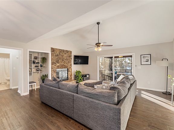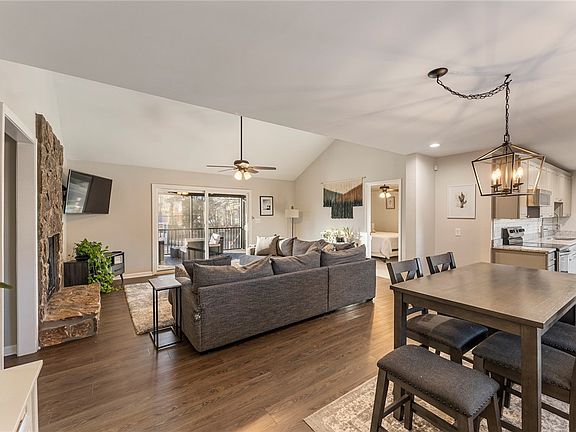 Starting with the inside, the kitchen is equipped with an abundance of custom cabinetry with soft close hardware, stainless steel appliances, a multifunctional window seat, and a coffee bar! You'll notice the luxury vinyl flooring throughout the living spaces that will withstand the test of time. The plantation shutters will let in beautiful sunlight at any time of the year. You'll also notice the stone fireplace is a focal point of the cozy living room. The 3 large bedrooms have nice plush carpets to help keep your toes warm for any season. Each bedroom also offers plenty of closet space for your items, with the master having a walk-in closet. The convenience of the attached garage makes staying out of undesirable weather easy peasy. Laundry will be a cinch with the oversized laundry room, equipped with storage shelves and space. The washer and dryer, as well as the two mounted televisions will stay with the home, so no need spend any additional money up front.