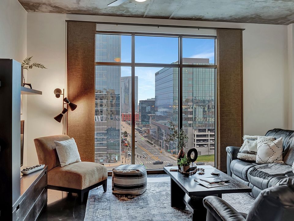 Save as much as $579 per month on your mortgage payment. With a full price offer seller will pay $10,508.02 towards temporary mortgage rate buydown as low as 5.5% for the first year of the mortgage for well qualified buyers .Living room furniture included, ask agent for exact details. The Rhythm is excellently located. It has easy access to the interstate. Music venues, bars, restaurants, and Bridgestone arena are in walking distance. Enjoy the vibrancy of downtown Nashville from your home. This is a true one bedroom condo. Storage unit and assigned parking are included. Ten minutes to BNA. Six minutes and one mile to the Ryman. Six minute walk to Whole Foods. Six minute walk to Bridgestone Arena. The condo has two balconies, one off of the bedroom and the other is off of the living area. It's hard to beat the view at this price.