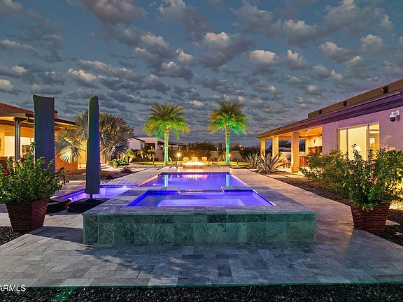Stunning remodel! Amazing exterior! Sparkling pool and spa! RV Garage with temperature controlled shop/office! 1248 square foot guest house (included in total square footage) with separate bedroom, full bath, kitchen and family room! One acre lot! Over $500,000 in updates and upgrades inside and out of this beautiful home. Totally reimagined kitchen with all new cabinets, breakfast bar and island with beautiful quartzite countertops throughout, and expanded walk in pantry. Top of the line GE Monogram appliances ,including 48''range with double oven, grill, griddle, and 4 large gas burners. Custom wood wrapped range hood. Enormous hand-made farmhouse sink. Separate island with second prep sink. Large eating area with expanded cabinets and additional countertop space. (read more) Kitchen opens to great room/family room with fireplace. New wall of windows leads out to your backyard paradise with resort-like grounds and outdoor features! Custom designed outdoor kitchen with extra storage and built in BBQ, large play pool, spa, putting green with lighted holes, additional turf area, fire pit, and lots of covered patio space. You'll never want to leave! Back inside the home, you will find 4 bedrooms, 3 full baths, an office and a temperature controlled 150 bottle wine room. New luxury vinyl flooring in main home. The primary bath is luxurious and totally redone with large format porcelain tile surround in the shower, quartz countertops, custom wood cabinetry and updated mirrors, lighting and fixtures. The walk in closet has been expanded and closet system installed. On top of all of this, there is the 1248 square foot guest house with large covered patio space. Over $80,000 in landscape design, plantings, pavers, lighting, fans and gutters! Owned solar - main house and pool. A full list of upgrades and updates can be found in the documents section of the listing. Most furniture available under a separate bill of sale. This stunning home is located close to shopping, restaurants, medical and the huge employment corridor at TSMC.