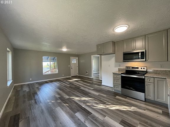 Welcome to home to this charming bungalow in quaint Cottage Grove! This home has been tastefully remodeled and is move in ready with no detail spared. All new finishes outside, featuring a brand new roof, new vinyl windows, exterior doors, paint and hardware. Inside you will find new cabinets with granite counters and stainless appliances, new texture and paint, new wall heaters and water heater and all new lighting, hardware and plumbing fixtures. The LVP floor throughout make it easy to maintain and it feels very spacious. The bonus space could be a third bedroom or home office. Both the plumbing and wiring have been updated and there is a new electrical panel. Brand new crawlspace insulation and vapor barrier. The large yard has ample room for parking an RV, or even a potential ADU in the spacious back yard area. Two abundantly producing apple trees and a large concrete patio round out the exterior. Just a short distance to shopping, schools and downtown. Don't miss this opportunity!