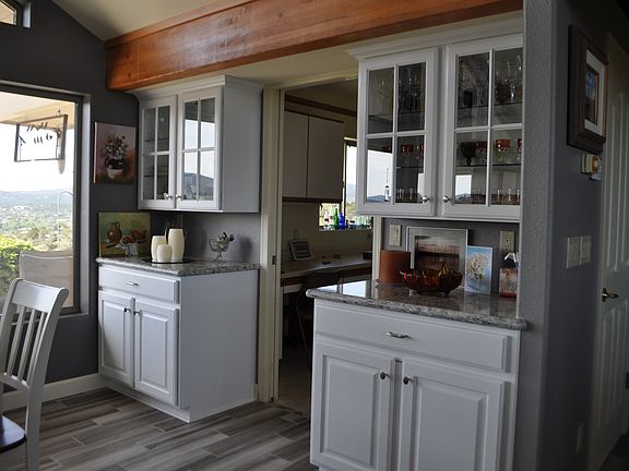 INCREDIBLE Views! This home has been built to maximize the picturesque beauty from every angle. You will feel on top of the world as you look over Prescott. Rear views overlook tribal vacant lands. Beautifully updated kitchen and floors for a light bright neutral feel. Live on the main level with 2 bedrooms and 2 baths. Master bedroom with private front deck and showstopper bath and closet. Large laundry could easily be used for hobbies and additional storage. Butler pantry for even more storage and additional oven and fridge space. This home is perfect to wow your guests while entertaining. Lower level offers 3 bedrooms and full bath. Two of the bedrooms has private sink in the room. Family room with separate level access perfect for family. Large room with wet bar storage and fridge an