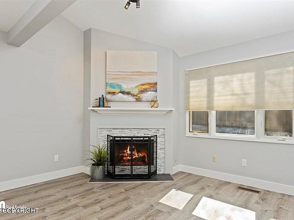 Beautiful remodeled South Anchorage townhouse-style condo with Vaulted ceilings leading to open Kitchen, sun-drenched Living Room and cozy wood Fireplace. Gorgeous custom Kitchen with Quartz countertops, SS appliances, rich Luxury Vinyl Planks. Sliding glass door leads to your private south-facing Deck in backyard. Super low maintenance living, Vacant & Move-in ready. Independence Park is knownfor it's pedestrian friendly trails, proximity to schools, shopping and business district. Commuter friendly location just 2 minutes from the Seward highway. You are going to love living here! Two pets allowed, no breed restrictions apply.