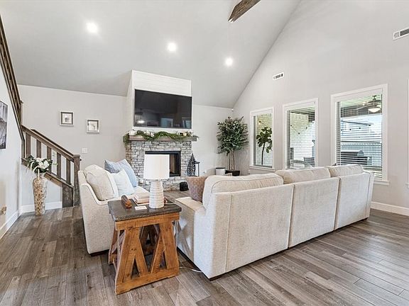 STUNNING! This 2800+ SF home will check everything off your list. Work from home? The 4th bedroom just off the entry could be the perfect office. Need the 4th bedroom? This room has a closet and full bath just across the hall. Like to entertain? Expansive living area with gas log fireplace, open to a dining room that will accommodate a table for eight. DOUBLE islands, with seating area for several and serving space for many. So much granite countertop space. Bake cookies for days! Large pantry, five burner gas stovetop with pot filler...it all adds up to a cook's dream kitchen. Take the party outside with the large covered patio, outdoor fireplace and cable ready for your TV to watch the big game. Manicured, fenced backyard ready for your puppy. The spacious primary suite is on the main floor, with a bath that features an oversized shower, free standing tub, luxurious double vanity and a walk in closet that has access to the laundry area. Upstairs are two large bedrooms and a Jack & Jill bath. Simply lovely!