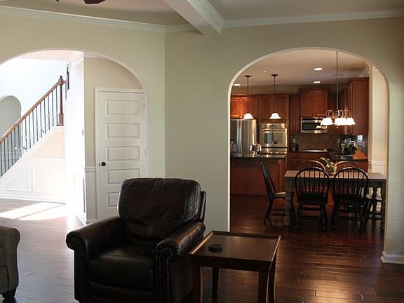 Nearly new home with lots of upgrades. Hardwoods on all of main, stairs & landing on second floor. Wrought iron balusters. Kitchen with granite, extra-large island, stainless double ovens & under cabinet lighting. Extended patio out back with private fenced backyard. Master with tile floor, shower & granite. Upgraded lighting throughout home coffered ceilings in dining room & living room. Lots of architectural details. This home is immaculate & has too many upgrades to list.