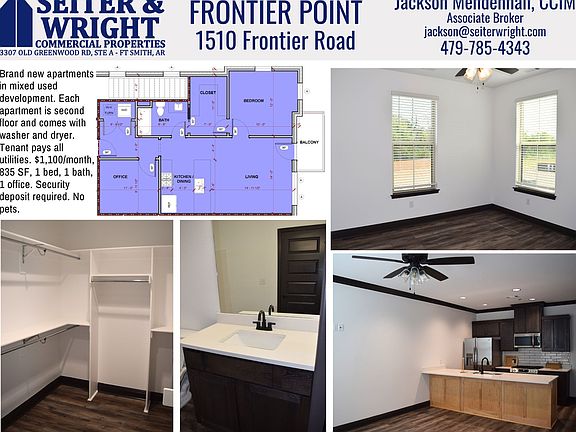 Brand new apartments in mixed used development. Each apartment is second floor and comes with washer and dryer. Tenant pays all utilities. $1,100/month, 835 SF, 1 bed, 1 bath, 1 office. Security deposit required. No pets. Brand new apartments in mixed used development. Each apartment is second floor and comes with washer and dryer. Tenant pays all utilities. $1,100/month, 835 SF, 1 bed, 1 bath, 1 office. Security deposit required. No pets.