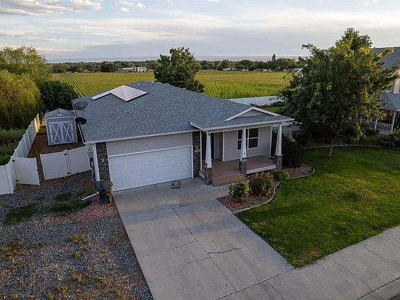 At this price you should have BUILT IN EQUITY!! Wow this is a beautiful home in a highly desired neighborhood! Professionally cleaned, brand new carpet and brand new microwave. The outside has been power washed and has vinyl siding for easy care. One level living .This is an open and spacious home with a large living room, open kitchen/dining/family room. A full bath off the hall with 2 bedrooms. Master bedroom with ensuite - separate tub and shower with a large walk-in closet. Step out your back door to a covered porch and fenced back yard. Sprinkler systems to take care of the yard with gorgeous roses and trees. BUT the best news is this house offers SOLAR and GEO THERMAL heating and cooling!! The home is all electric with the opportunity of getting a check back from DMEA at the end of the year. A short walk to the park and playground. No building behind you at this time. A large shed on the side of the home for all the yard tools and storage.