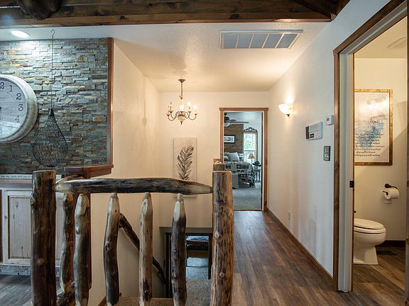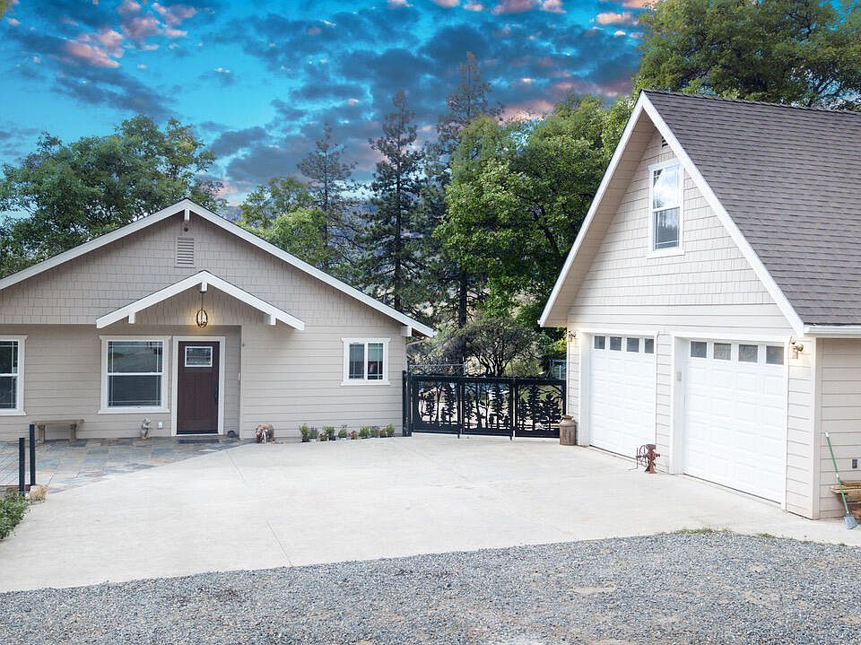 Secluded private cabin in Camp Nelson. Make it your 2nd home or your full-time residence, this cabin has it all. Plenty of living space with 2530 sq ft, spacious living room with vaulted ceilings, and new wood stove. The open floor plan flows into the kitchen and dining room. The large master suite features an amazing bathroom with a jacuzzi tub, fireplace and a large walk-in shower with a rainfall head. Downstairs has two guest rooms, a full bath, and a living room. New flooring, carpet, and paint. throughout. Two-story detached shop with 450 sq feet upstairs and 450 feet downstairs. The 2-car detached garage is fully insulated, drywalled, textured, and painted, with dual-paned windows. The seller has added a game room/guest room above the garage for extra guests. Approximately 1/2 of the property is bordered by Forest Service land with hiking paths right off the property, million-dollar views, with over 1300 sq ft of decking.