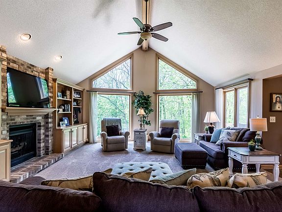 FABULOUS, IMMACULATE, UPDATED 4 BEDROOM, WALKOUT RANCH LOCATED ON A PRIVATE PARTIALLY WOODED CUL DE SAC LOT. YOU WILL SEE LOT'S OF DEER AND WILD LIFE ON THIS .897 ACRE LOT. Built by Bob Buescher. Nice foyer entry with cath. ceiling & new railing. Dining room includes newer lam.flooring, wndw seat, crown molding, chair rail, & step ceiling with trim. You will enjoy relaxing in the spacious impressive Great Room featuring a cath ceiling, wall of windows to let in lot's of light and great view of the wooded lot, built in bookcases, & brick to ceiling fireplace. Open floor plan. You will spend lot's of time in the kitchen which opens to the Great room, featuring vaulted ceiling, newer granite counter tops & flooring, breakfast bar, back splash, pantry, corner windows over the kitchen sink for great views of the backyard, desk area, & all appliances stay, brand new dishwasher. Awesome spacious Master Suite offers large walk in closet, newer windows & carpet. Master Bath features garden tub, and updates including granite ctr tops, ceremic tile, shower door, shower head, and faucets. Two additional bedrooms are nice sized with lge closets. Laundry room on the main floor offers cabinets and utility sink. Awesome walk out lower level features large daylight wndws, built in bookcases, brick to ceiling fireplace & large bar area. 4th bedroom in lower level with large walk in closet. Two extra rooms can be used as a recreational, toy room, den/office, loads of storage area. Two additional full bathrooms updated with in the last 3 years. Oversized 3 car garage with peg board, pull down stairs and storage. Gas generator hookup and irrigation system. You will enjoy the impressive outdoor living with the peaceful, private, secluded lot. Trex deck leads down to the lower patio area with firepit. Newer up dates include flooring, up dated bath rooms, granite counter tops, lighting, faucets, shower doors, painting, back splash, some newer windows, & railing. Within walking distance to the pool. Close to schools, shopping and I 69! THERE IS NOTHING YOU WON'T LIKE!! I WOULDN'T WAIT OR IT WILL BE GONE!!