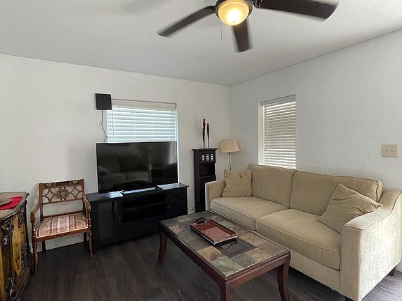 Perfect location for small business or family home. Fully furnished, 1400+ square feet of living space and a fenced-in backyard. Convenient location near shops, schools, businesses. Four bedrooms and a reception area. Enjoy dining in the eat-in kitchen with stove, oven, refrigerator. Washer/dryer on site. Act quickly and fill out the application to tour this home! This great place will not be vacant for long! Renter pays all upkeep, including grounds maintenance, utilities, pest control.