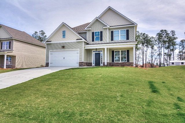This new, beautifully designed home features craftsman accents and sits on a level lot in Walton Hills Subdivision. Front porch with stone accents welcomes you into a beautiful foyer with vaulted ceiling. Attractive laminate flooring continues into formal dining room which also boasts a lovely chandelier and chair-rail molding. Eat-in kitchen is exquisite and spacious with gleaming granite counters, stainless-steel appliances, island with breakfast bar, stone backsplash, pantry and breakfast nook with back patio access for easy outdoor entertaining. Great room is spacious, and full bath is convenient to main living areas as well as downstairs BR. Arched doorways, carriage-style doors and oil-rubbed bronze fixtures add custom character throughout. Staircase with wrought-iron railing leads up to remaining 4 BRs and laundry room. Owner suite boasts tray ceiling, dual walk-in closets, dual vanities, garden tub with tile accents and shower. Call today for a private showing before it's gone!