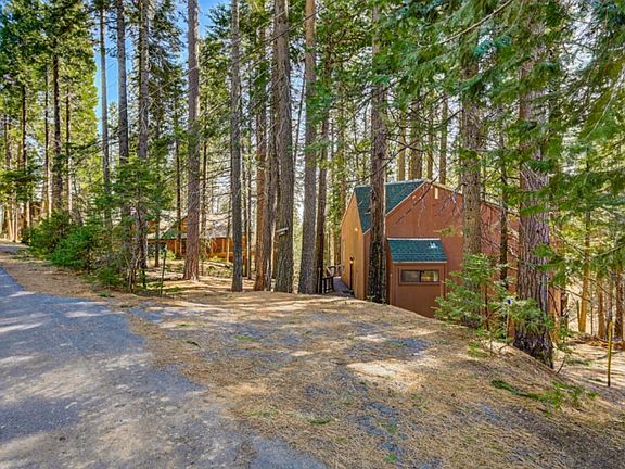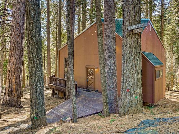 Nestled on a generous half-acre plot with an awe-inspiring view of the ridge line, this enchanting cabin feels like a tale spun from folklore. Embrace the scenery from every corner of the deck or bask in the natural light pouring through the abundant windows. Inside, the open layout boasts two main-level bedrooms, a lavish bathroom featuring a jetted tub, and a mesmerizing spiral staircase ascending to the loft above. Upgrades such as tiled flooring and kitchen countertops enhance both durability and style throughout the residence. Retro charm permeates the high ceilings, exposed beams, sunken living room, and red tile wood stove hearth, evoking a sense of nostalgia. Nestled amidst a canopy of mature trees, there's ample room to relish the serenity of mountain life. Enjoy the downstairs utility room accessible from the back deck, featuring the laundry area in addition to ample storage for overflow items. Additionally, residing within the optional Big Trees Village association grants access to amenities like pools, playgrounds, and tennis courts. With close proximity to Bear Valley Ski Resort, Big Trees State Park, and Murphys wine country, you can fully immerse yourself in the Sierra foothills lifestyle.