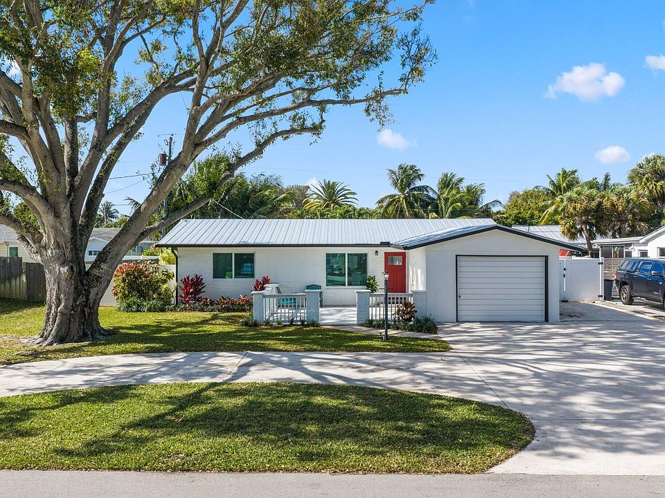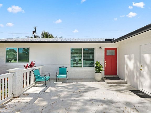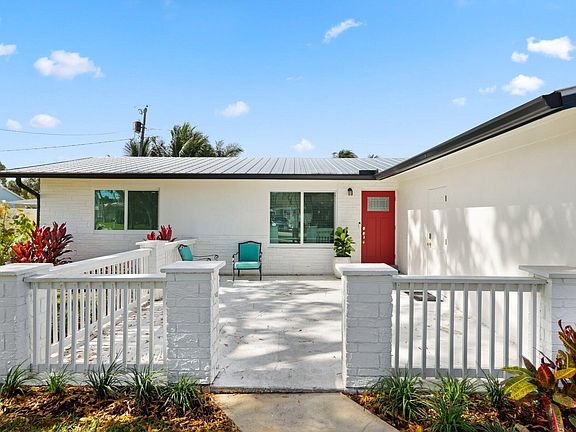 Charming home with warm curb appeal, highlighted by the circular driveway, mature oak tree, open courtyard, and inviting red front door. This 3 bedroom, 2 bath residence offers a spacious living room and a desirable split-bedroom floor plan. The open layout includes vinyl flooring throughout, ample storage, walk-in pantry and dedicated laundry room. Extensively updated providing peace of mind for the next owners, home features include impact windows and doors (2023), metal roof (2022), new AC (2021) with all new ductwork (2024), water heater (2021), upgraded electrical panel (2020), and LED recessed lighting throughout. Outdoor enhancements include new landscaping and a PVC privacy fence with double gate installed in 2024--perfect for storing boats, trailers, or recreational vehicles. Enjoy all that the Jupiter/Tequesta lifestyle has to offer with in walking distance, from the local green market, to Perk Coffee shop, Village Yoga, shopping at Marie Antoinette's, and much more! Jupiter island public beaches and Burt Reynolds Public boat ramp are with in a short distance. This home is a must see!
