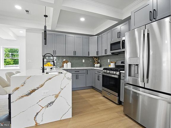 Newly renovated 3BR/3.5BA expanded Cape style home on a spacious lot in the quiet neighborhood of Ednor Gardens. Make your way to the covered front patio of your forever home and step inside to a completely transformed main floor plan. The main floor offers the open concept floor plan homeowners are seeking, boasting a large living room with a beautiful custom feature wall offering a gas fireplace, a large dining room, and a gorgeous kitchen. The kitchen features a coffered ceiling, plenty of cabinets, stunning granite countertops with a beautifully tiled backsplash, stainless steel appliances, a waterfall edge on the peninsula that hosts a deep sink, elegant pendant lighting, and breakfast seating for three. Tucked behind the kitchen is a half bath and access to an enclosed mudroom which leads to the spacious yard and lower level. On the newly carpeted second floor are two sizable secondary bedrooms, one with a walk-in closet, a newly remodeled full bath with a double vanity featuring vessel sinks, and a primary suite. The primary offers a walk-in closet, a second closet, and a private ensuite featuring a beautifully tiled walk-in shower. The lower level is finished offering plenty of additional living space with a large family room, a full bath with a gorgeous walk-in shower, laundry, storage, and a walk-out to the yard. The yard offers plenty of green space, a detached one-car garage, and tons of possibilities. This home is move-in ready with so much to offer new homeowners and is located in close proximity to shopping, restaurants, and commuter routes.