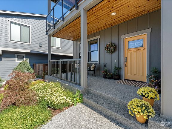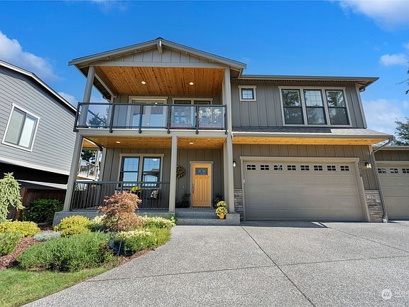 Enjoy water, island & ferry views from this nearly new home located in desirable 48° North. This 5 br 2 story home has 9 ft ceilings on both levels & over 3,100 sf of open concept living plus 3-car garage. Hardwood floors lead to a light & airy kitchen. Granite counters, dbl oven range, under cabinet lighting, microwave & walk-in pantry. Main floor has flex rm closed off by pocket doors, hearth rm w/gas FP, 5th bdrm/office plus 3/4 bth. Upstairs find the primary bdrm w/luxury bth & heated tile floor, additional 3 bdrms plus bath w/dbl sinks, laundry rm & family rm w/kitchenette. Watch breathtaking sunsets from the covered deck. Fully fenced private backyard, convenient walkout patio, irrigated landscaping. HOA. Move in ready!
