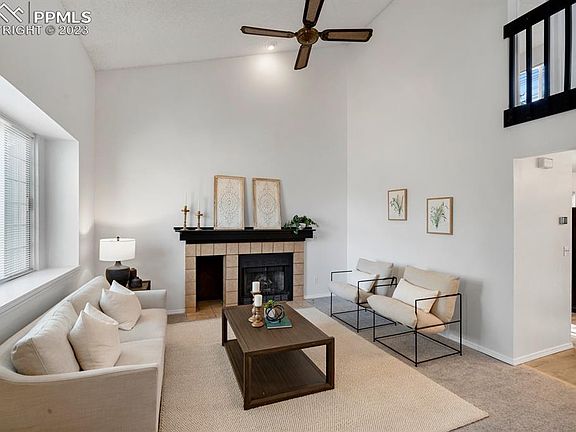 Nestled in the distinguished Constitution Hills Neighborhood, this exquisite 2-story home offers the best of both worlds - proximity to the city's premier businesses and a serene retreat on a peaceful cul-de-sac. As you enter, be captivated by the high vaulted ceilings and brand-new plush carpeting that spreads warmly throughout the home. The spacious main living area, complemented by a cozy gas fireplace, feels all the more inviting with its fresh interior paint—giving the home a revitalized and contemporary ambiance. Adjacent to this area is a recently updated kitchen, equipped with brand new appliances, including a dishwasher, stove, and microwave. Set against the backdrop of stylish luxury vinyl plank flooring you will dine with a view as the kitchen window and the easily accessible back deck provide panoramic scenes of Colorado’s Front Range and the iconic Pikes Peak. Your private outdoor oasis awaits in the backyard, characterized by its mature pines and a statuesque Silver Maple, ensuring you’re always enveloped in nature’s tranquility. The comfort continues on the main floor with a spacious master bedroom and its adjacent bathroom. The top floor unveils a versatile loft, perfect as a children's play area or home office. This floor also houses two generously sized secondary bedrooms and a full bathroom. A ready-to-use space on this floor can also be easily converted to laundry facilities. For your peace of mind, this residence boasts a newer (2016) furnace, central air, and water heater, ensuring years of comfort and efficiency. Dive further into the home, and the basement presents a flexible space, perfect as an additional living area or a commodious bedroom, equipped with an adjacent bathroom and a spacious closet/laundry room. With a harmonious blend of fresh updates, breathtaking views, and unmatched location, this home is where your next chapter of cherished memories begins.