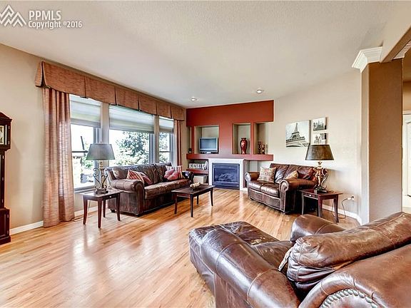 Stunning custom two story nestled in the trees of sought after Woodmoor. This beautiful home features a picturesque wrap around covered front porch that leads in to an open foyer with hard hardwood floors that flow throughout most of the main level. Formal dining room with trey ceiling, cheerful gourmet kitchen that features a slab granite counter and counter bar and pendant lighting, custom maple cabinets w/ pull outs and lazy susan, under counter electric floor vac, stainless steel appliances, and Breakfast nook. Walk-out to the large deck from the great room; ideal for entertaining. Spacious great room off of the kitchen with a gas fireplace, cut-outs and a large picture window to soak in the peaceful view. Main level office and a laundry room with loads of storage space and a sink complete the main. Upper level features a large master retreat with a gas fireplace, built-ins and a 5-piece master bath. Three additional spacious bedrooms, a full bath with double vanities and office/loft complete the upstairs. There is additional room to grow in the unfinished walk-out basement. Extras: new exterior paint and new carpet. A true gem that you wont want to miss!