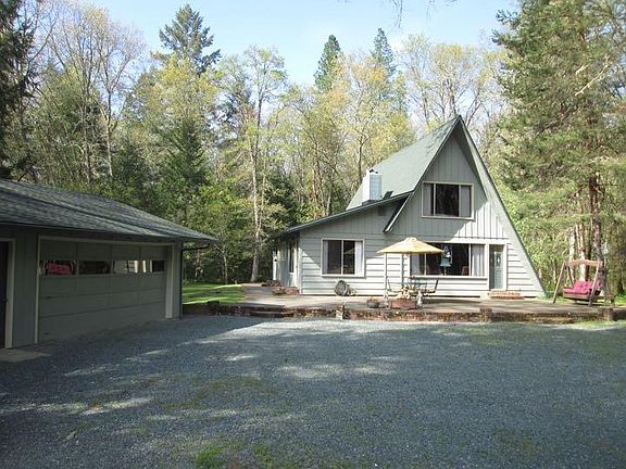 Amazing story book Cottage set in the perfect spot. This modified A frame home looks and feels much larger than its nearly 1700 feet. Inside is such a warm feeling with clear cedar paneling and tongue and groove knotty pine and exposed beams everywhere. This is total quality throughout and as such is a timeless style. New roof and carpet and solid wood doors as well as a large country kitchen with views out every window means you have found paradise. The property is almost 7 level, usable acres that is zoned to possibly split or build a second home. But you won't want to because what is here is perfect. Including a well established organic garden and orchard with a wonderful variety of fruit and nut trees and a seasonal creek with a beautiful water fall. This is truly heaven and for a very affordable price.